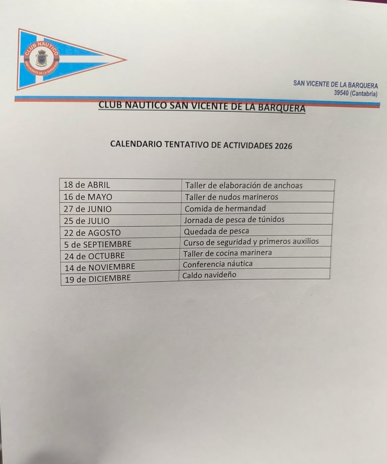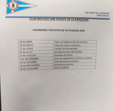Actividades del 2026 del club Nautico